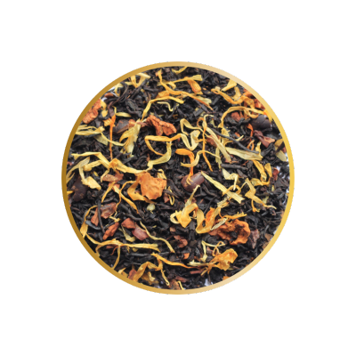 Ingrédients : thé noir Assam, -Inde du Sud, fève de cacao concassée, bâtons de cannelle, pomme, arôme naturel, souci, vanille.