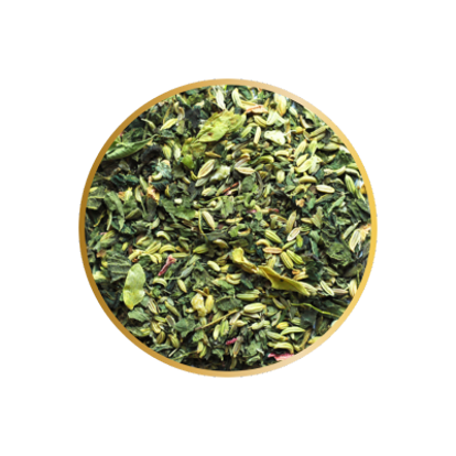 Ingrédients : Menthe* (29%), hibiscus*, bâtons de cannelle* (12%), racine de réglisse*, fenouil* (11%), gingembre*, écorces d’orange*, cannelle Ceylan, clou de girofle*, camomille*(3%), poivre rose*, cardamome.