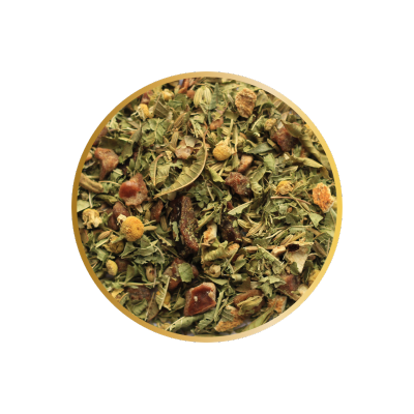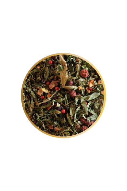 Ingrédients : Fenouil*, ortie*, mélisse*, gingembre(gingembre, sucre de canne brut), pétales de rose*,verveine entière*, fleurs de houblon*, aronia*, fleurs d’immortelle, badiane, fleurs de bleuet*.
